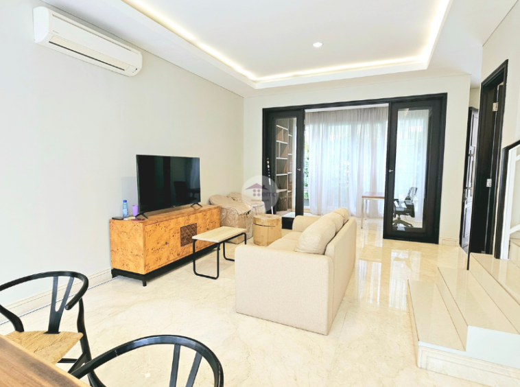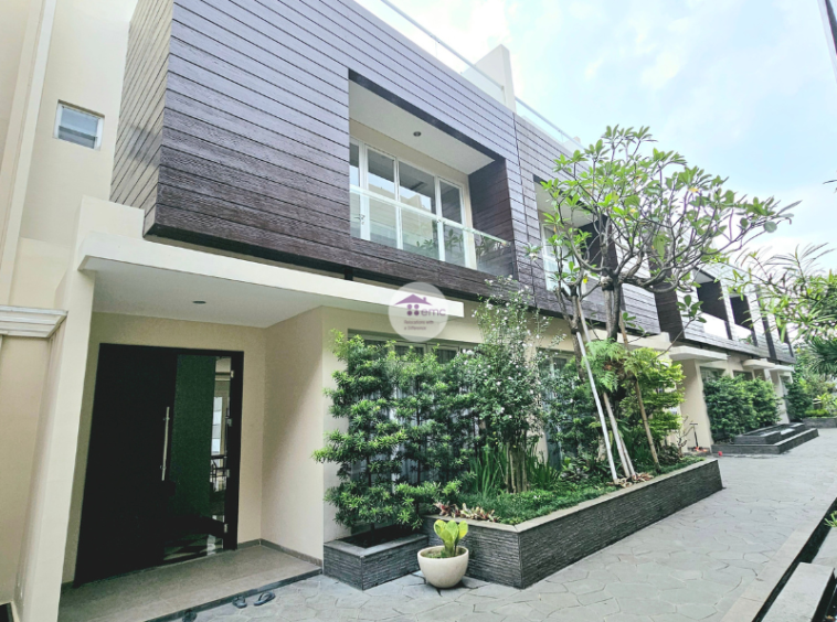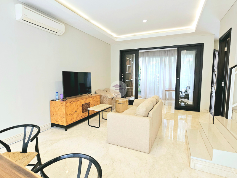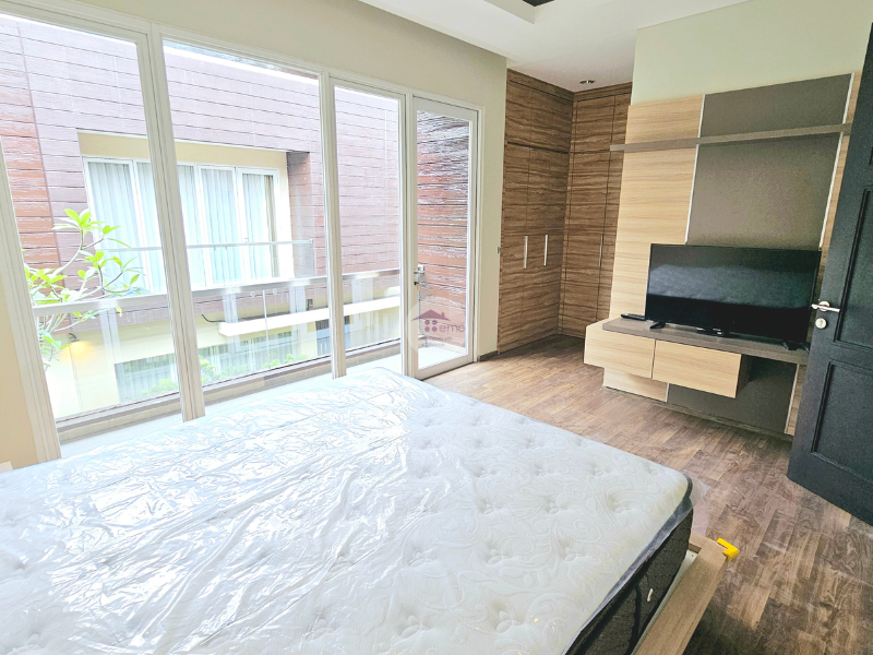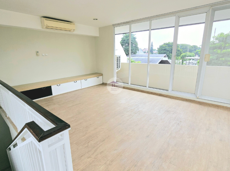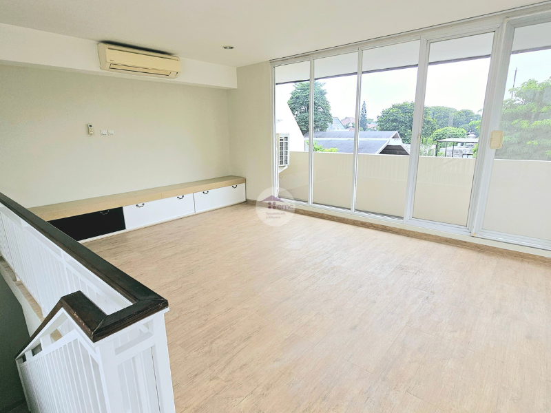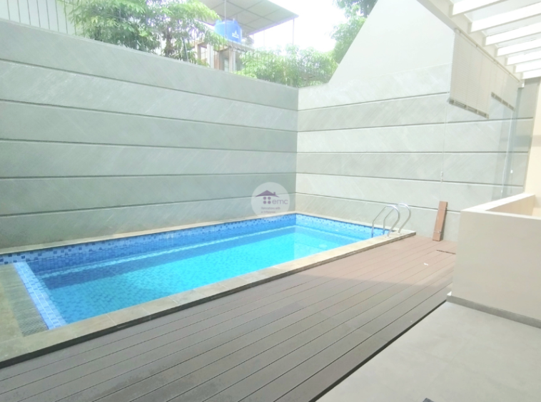 This classic house is in the town house with around 10 houses inside. The classic house consist of 3 level house with 3 bedrooms and 2 bathrooms, and 1 study room. Open kitchen style with combine living and dining area facing to the pool. There is no facilities in this house however it is still suitable for expatriate with family becuase it is just walking distance to the New Zealand School and Supermarket. This house can be set as furnished or unfurnsihed with different price. This classic house has a roof top that can be used as barbeque area and also multipurpose room with AC.
