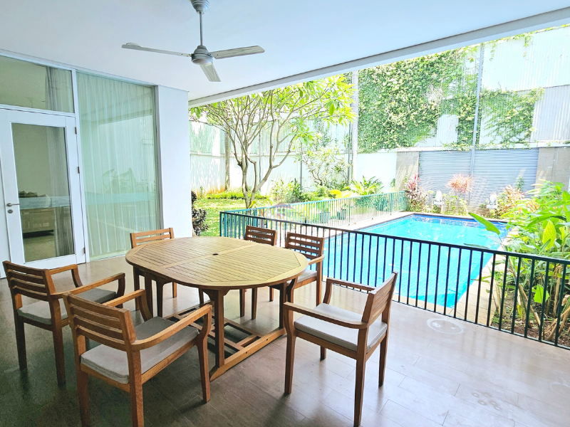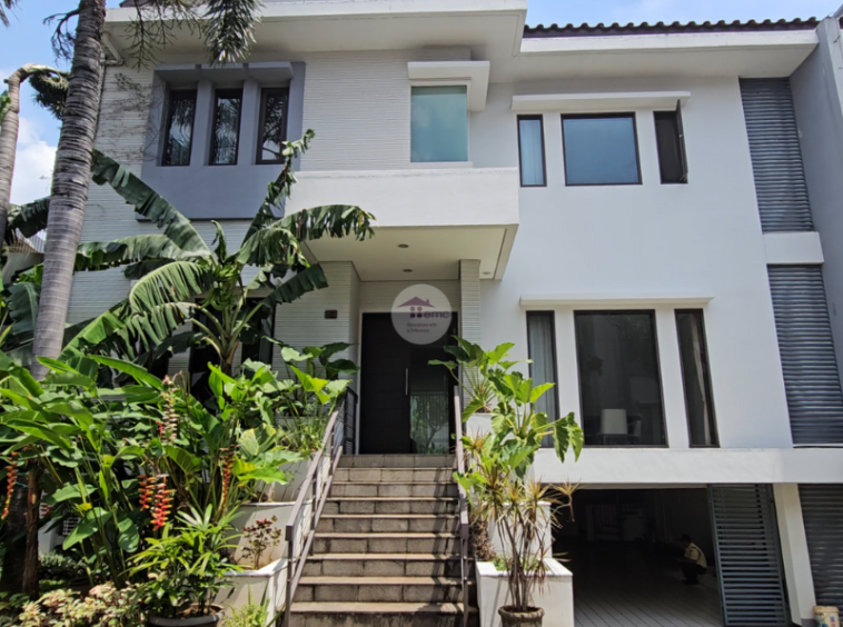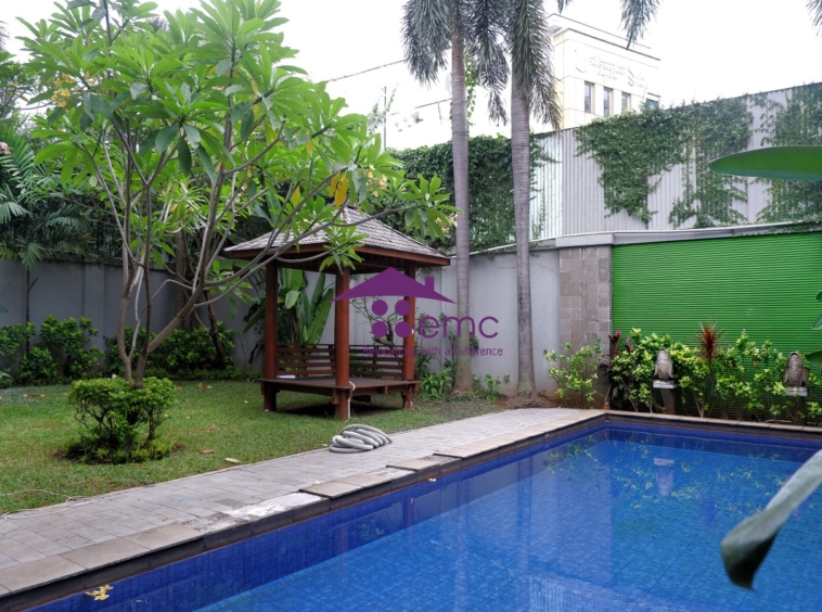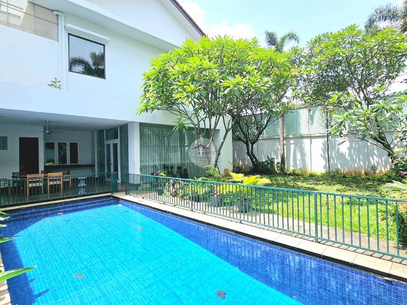 This is a homey and comfortable house in compound, this house is located in Cilandak, South Jakarta. There are more than 10 houses in this compound and every house has own swimming pool. This two story house has a beautiful garden at the back yard side by side with swimming pool. All of the kitchen is facing to the swimming pool.