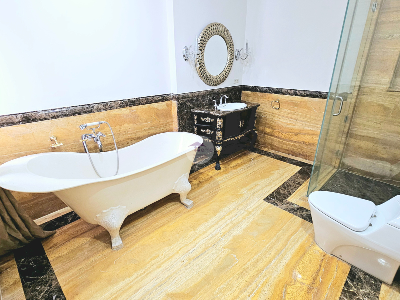 This modern house is very nice and homey. There are 4 bedrooms with ensuite bathroom. The modern kitchen is designly very nice and bright, make your cooking time so lovely. The bedrooms and bathroom was design nicely and modern, the lfamily room upstairs is spacious enough for expat family. The beautiful back terrace will make your barbeque time amaging with lovely garden.