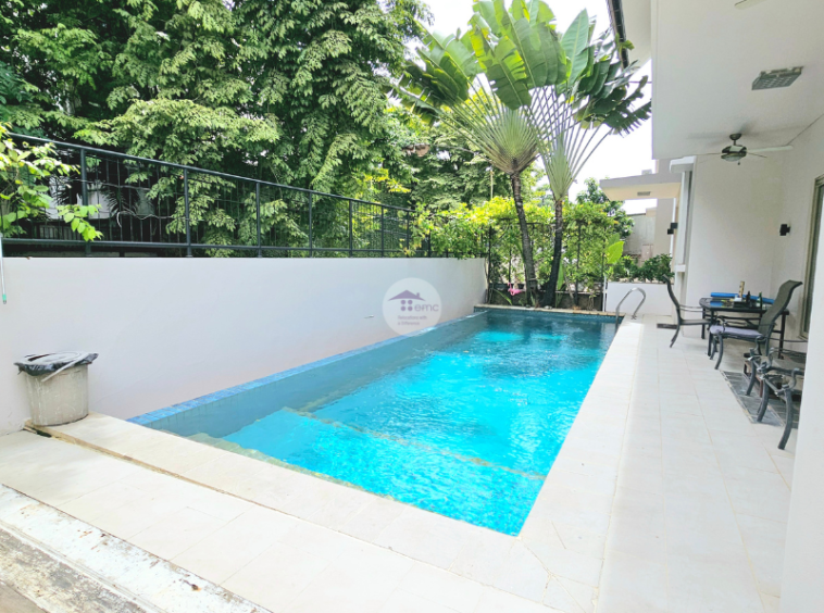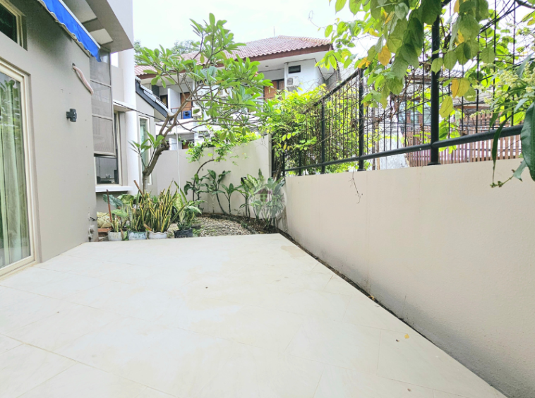 This modern house is located in one of the prime area, its Kebayoran Baru. The type of this house is very simple and nice, In the land of 400 sqm there are 5 bedroom plus 1 study room and 4 bathrooms. This modern house is very homey and comfortable. Living and dining room is facing directly to the pool and the design of the kitchen is open kitchen with a nicely design. The terrace attached with the pool is just nice for relaxation. This modern house is suitable for expatriate, couple or small family.