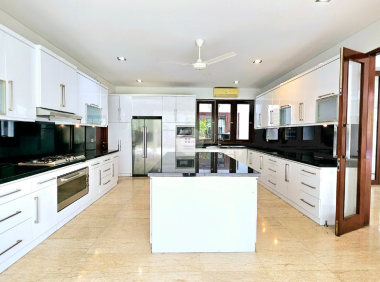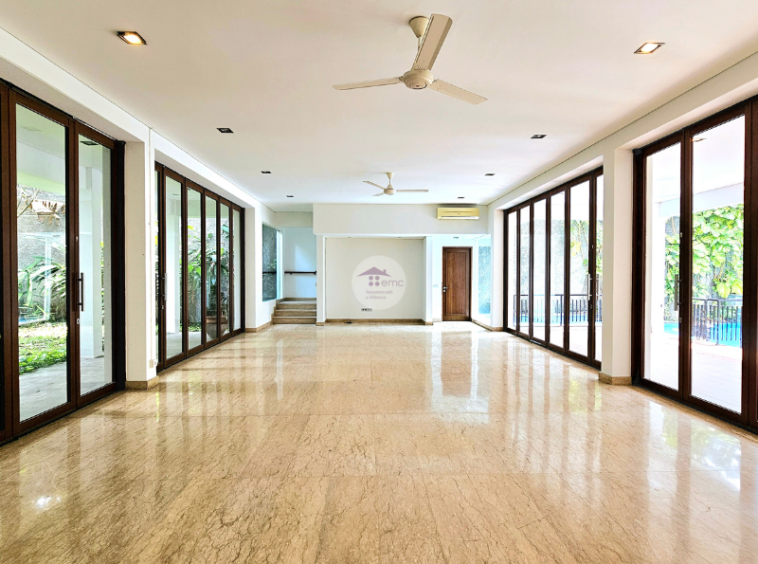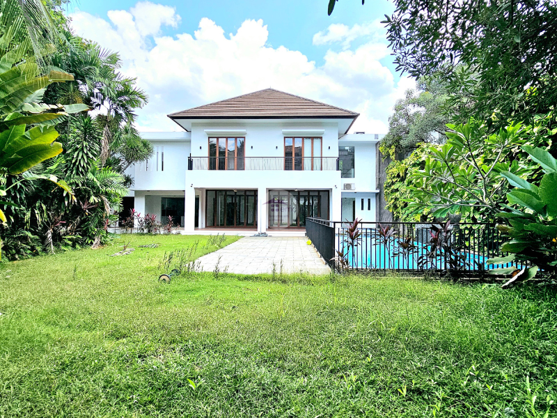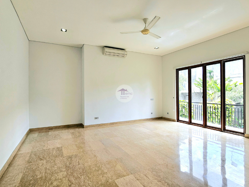 This stylish tropical Bali villa is located in Kemang. It is a small compound with 3 houses and every house has own swimming pool. This house reminds you as if you are living in Bali with the bifold glass doors that can be opened all the way to give plenty of air circulation.  The house has 4 bedrooms and study with huge garden at the back and also middle of the house. Located in Kemang with easy access to many international schools around Kemang, walking to cafes, restaurants in Kemang Raya, however it is quietly tucked away behind Kemang Raya. One of the most stylish houses for expat homes in Jakarta.